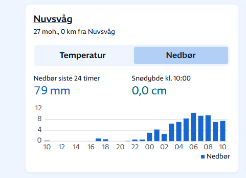 Som følge av kraftig nedbør på kort tid ble vannforsyningen i Nuvsvåg avbrutt i noen minutter i dag, 25.09.2025.