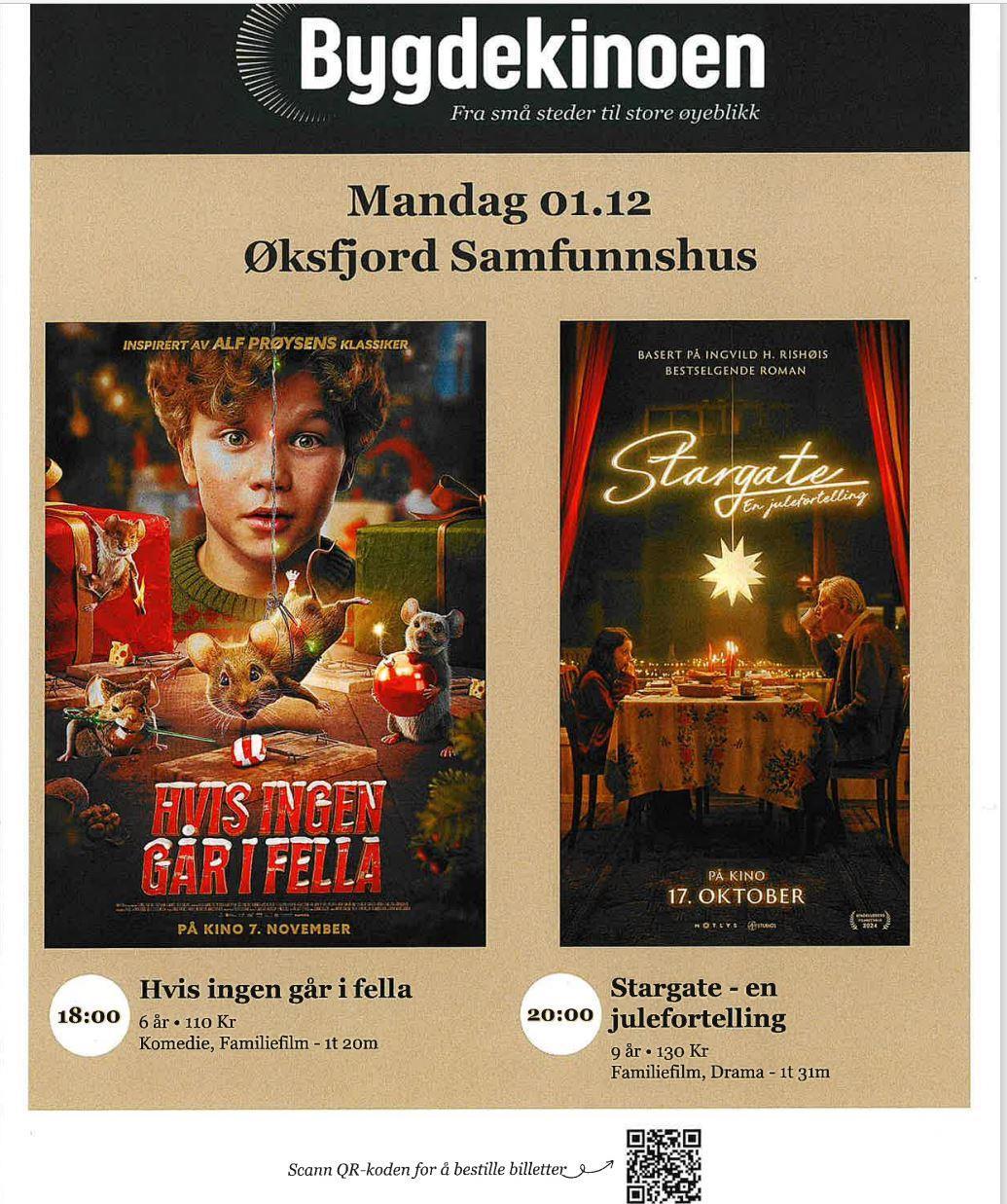 Kino på Øksfjord samfunnshus 01.12.25Velkommen til kinoforestillinger 1. desember kl. 18:00 og kl. 20:00 Publisert 18.11.2025 16:05 Sist endret 04.12.2025 12:04