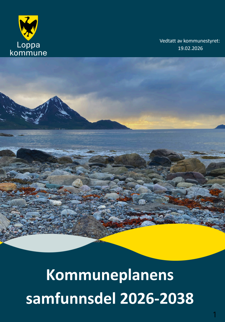 Kommuneplanens samfunnsdel 2026-2038Kommuneplanens samfunnsdel 2026-2038 (PDF, 34 MB)Status i Loppa - Kunnskapsgrunnlag (PDF, 22 MB)Folkehelseoversikt Loppa kommune 2024-2027 (PDF, 15 MB)Leve hele livet - kunnskapsgrunnlag (PDF, 3 MB) Publisert 08.10.2024 10:45 Sist endret 20.02.2026 08:42